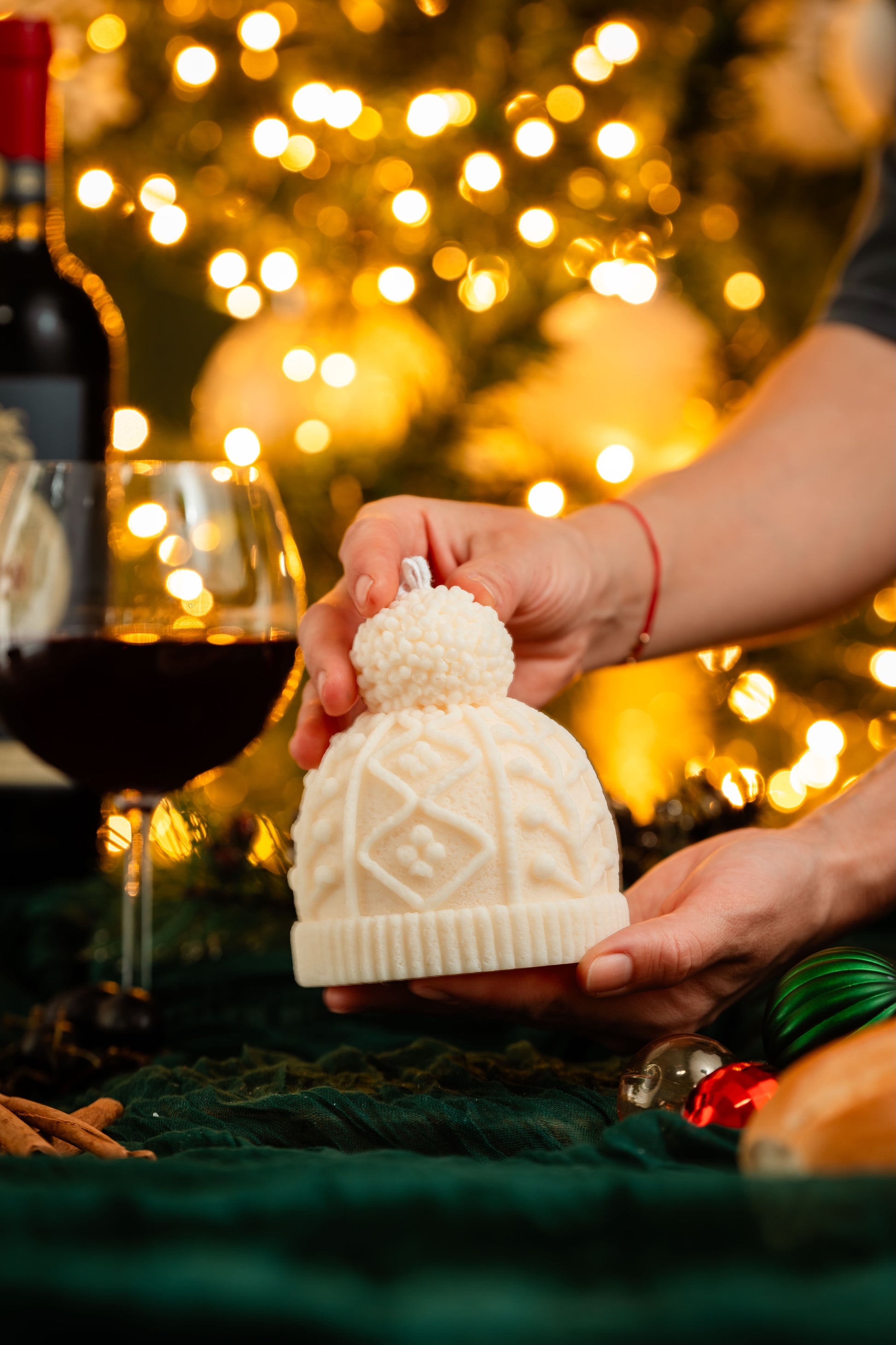 Christmas Bobble Cap Soy Candle – Holiday Décor | Hand-Poure