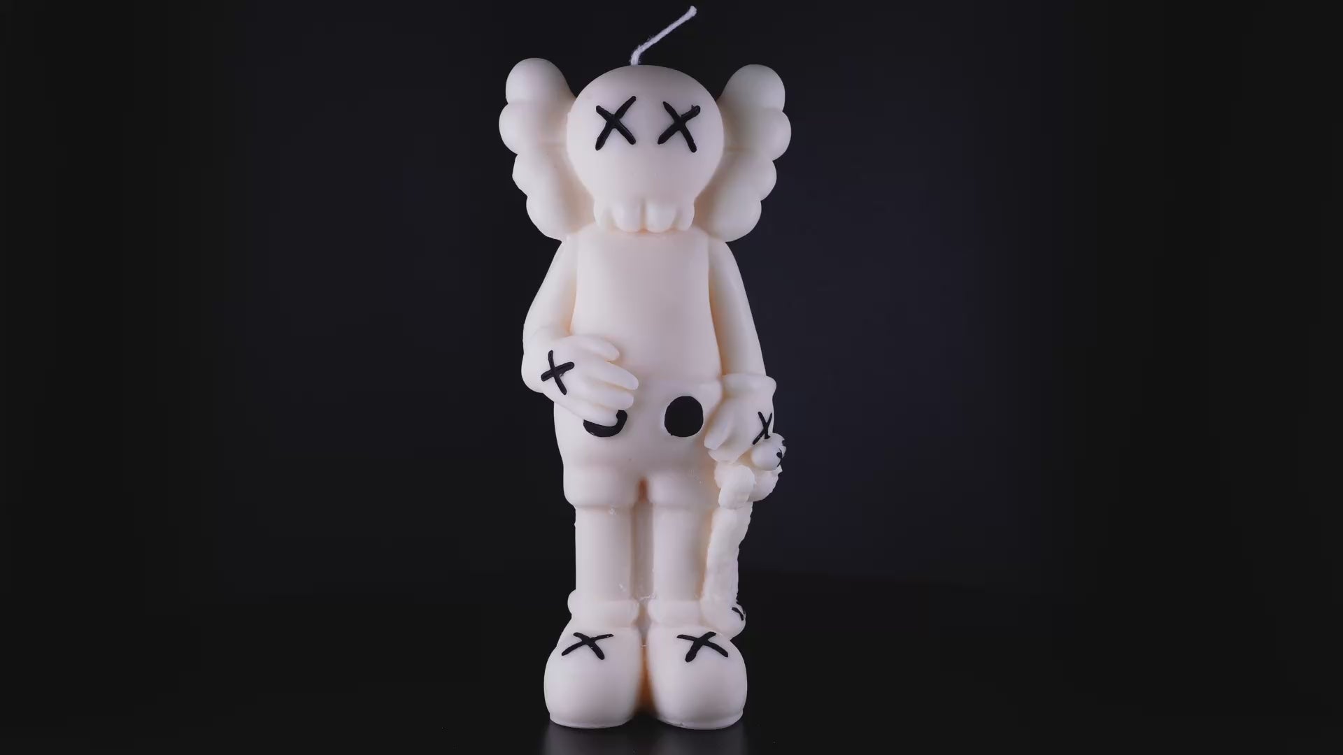 ✨ A striking statement as a standing KAWS inspired candle with toy, a collectible designer sculpture candle, or a handmade soy wax art piece for modern interiors and collectors.