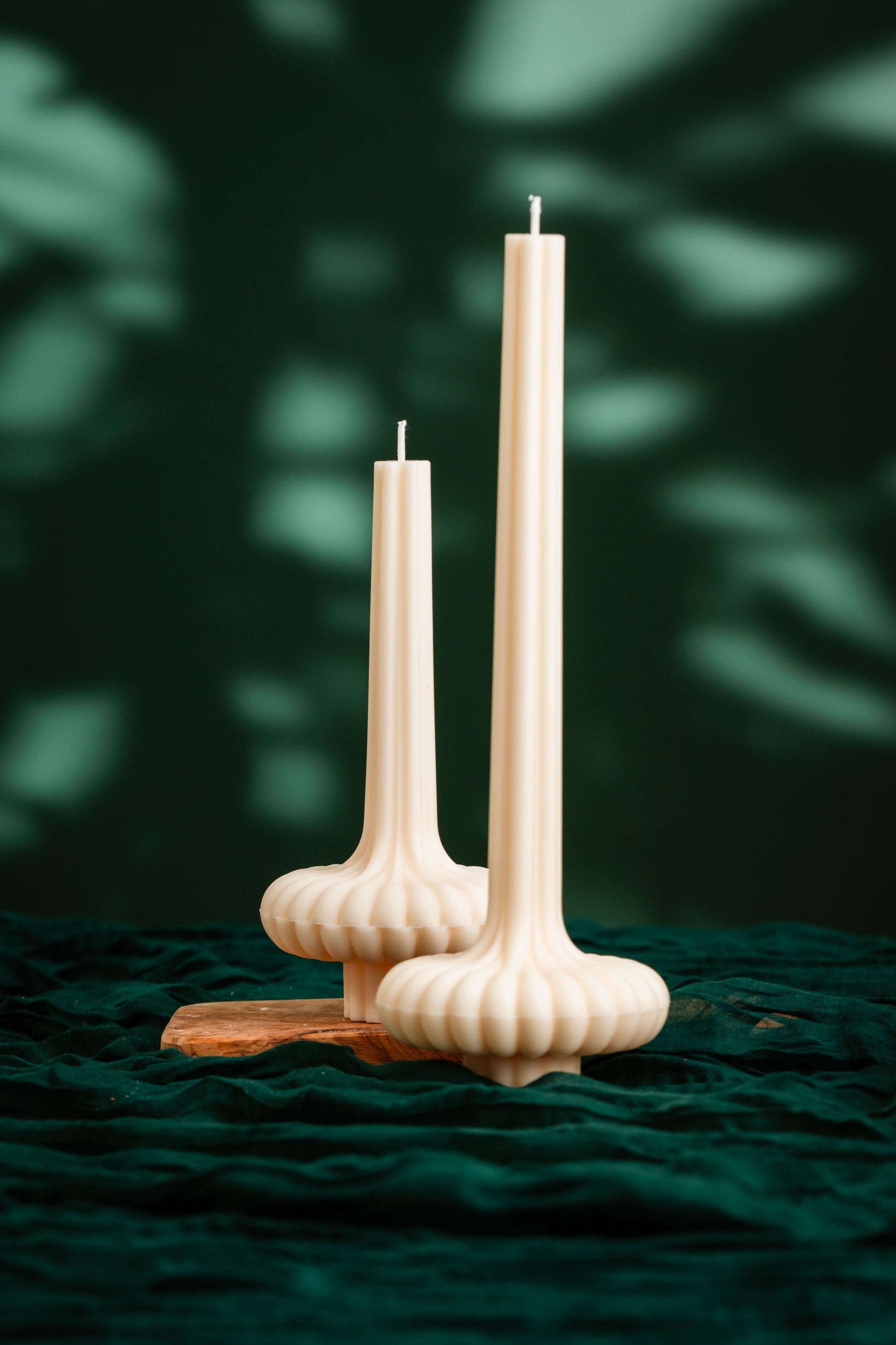 Each candle in the Sculptural Tall Candle Set is individually hand-poured in small batches to ensure consistent quality, smooth finishes, and authentic artisanal texture. Slight variations in color, frosting, or surface patterns are natural characteristics of pure soy wax.